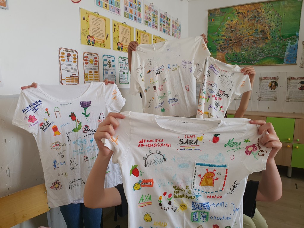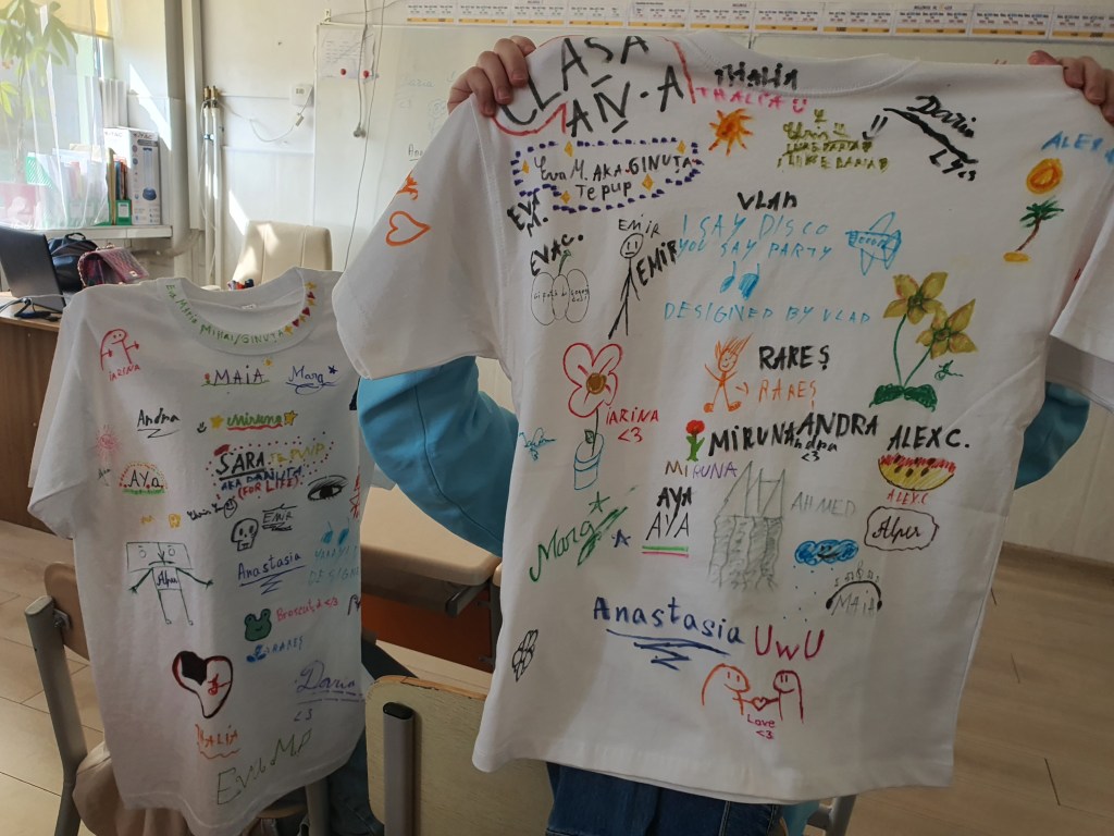 🧡Exersarea toleranței și dizolvarea grupulețelor – pentru o zi fiecare a relaționat cu fiecare, prin rotație, așa încât avem amprenta scrisă/desenată a fiecărui coleg de clasă. 🥊