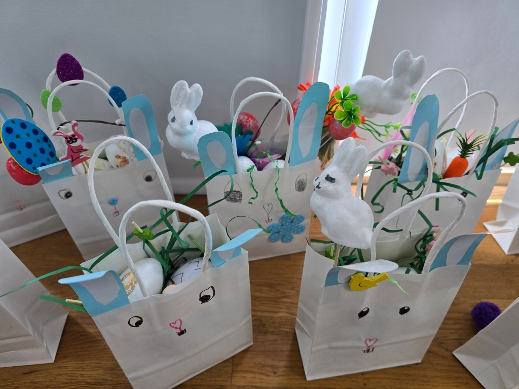 - asamblăm și pregătim punguțele: decupăm și lipim urechi, atașăm codițele și desenam ochișorii și boticul