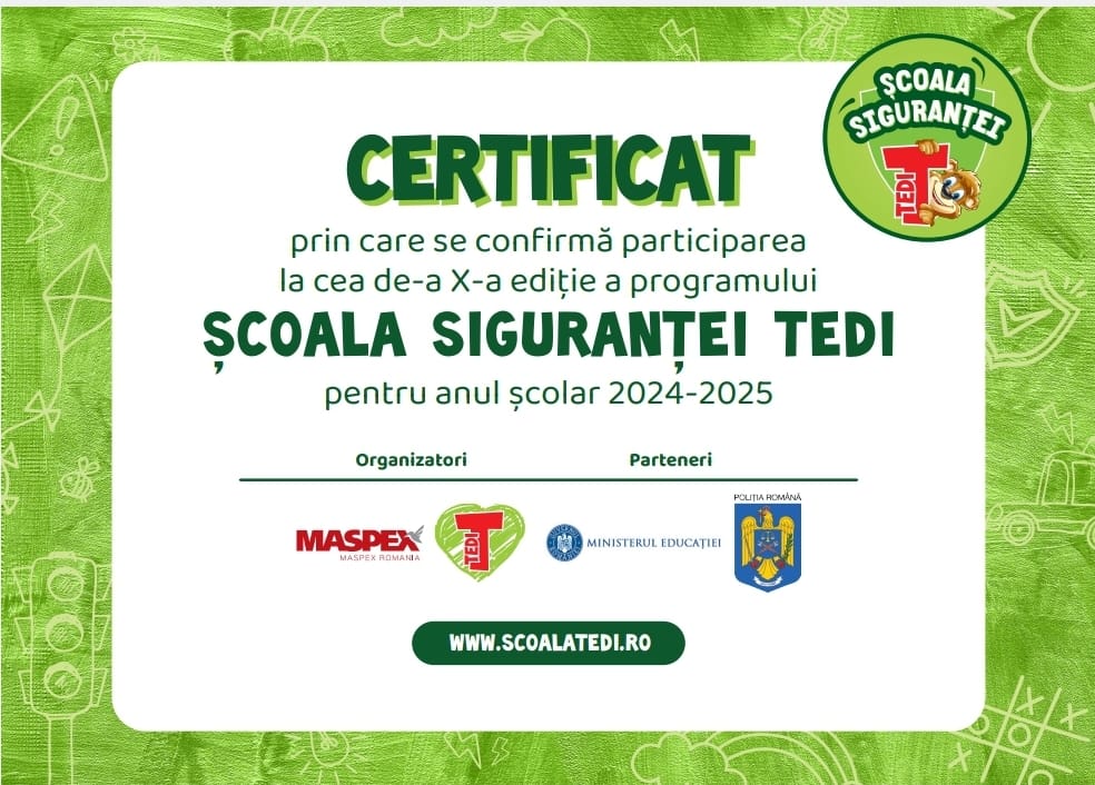 Clasa noastră se află printre câștigătorii lunii aprilie în cadrul programului Școala Siguranței Tedi! 🐻🚦