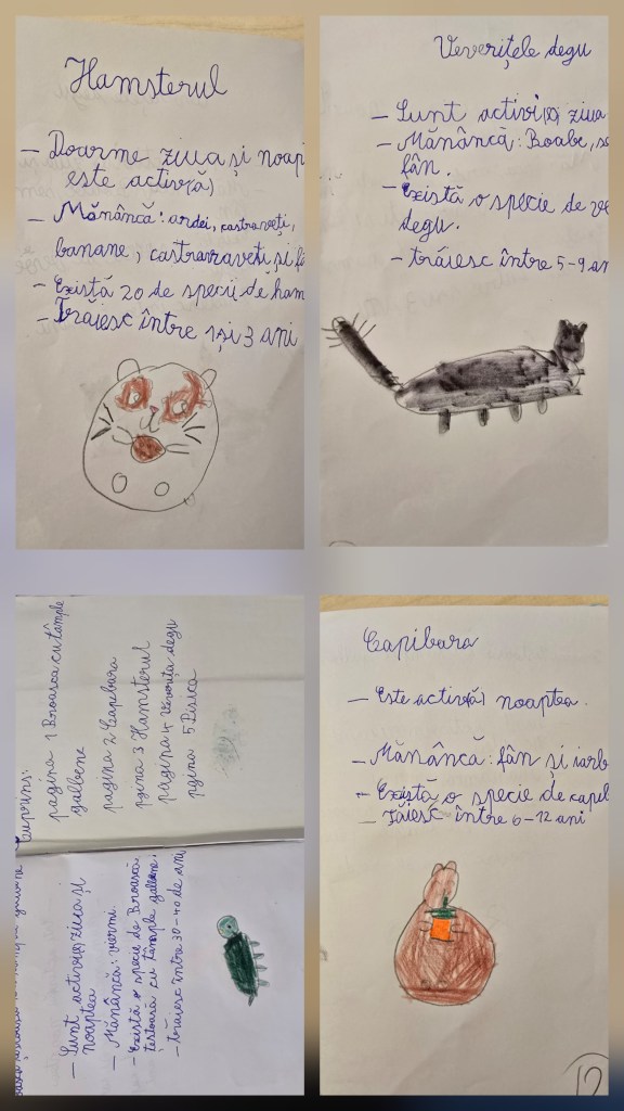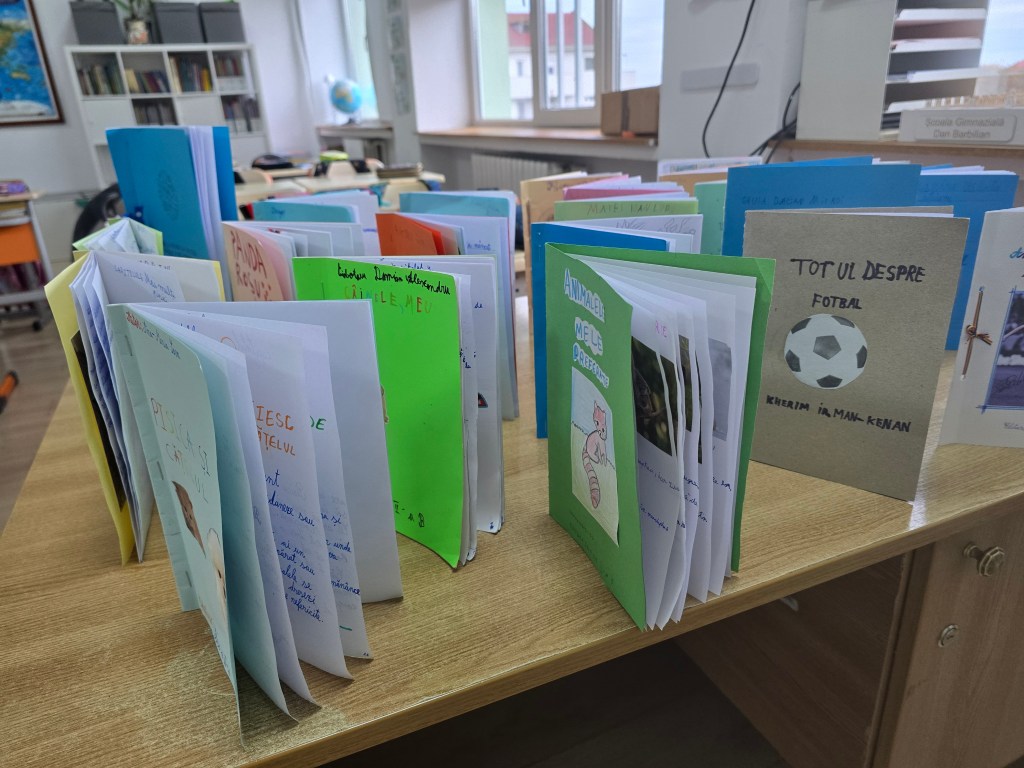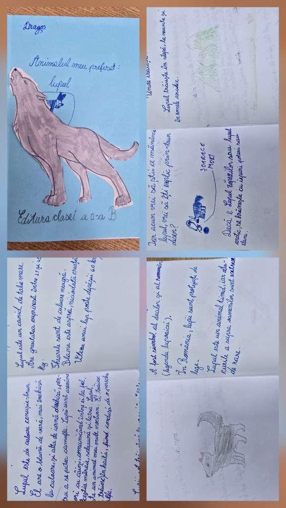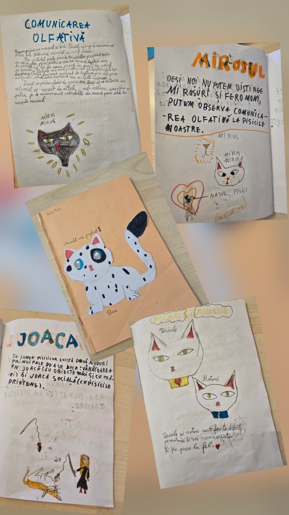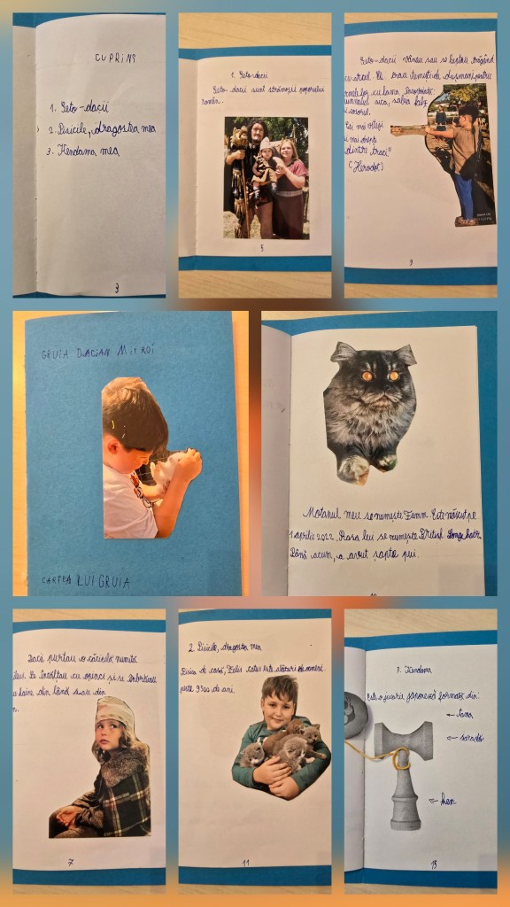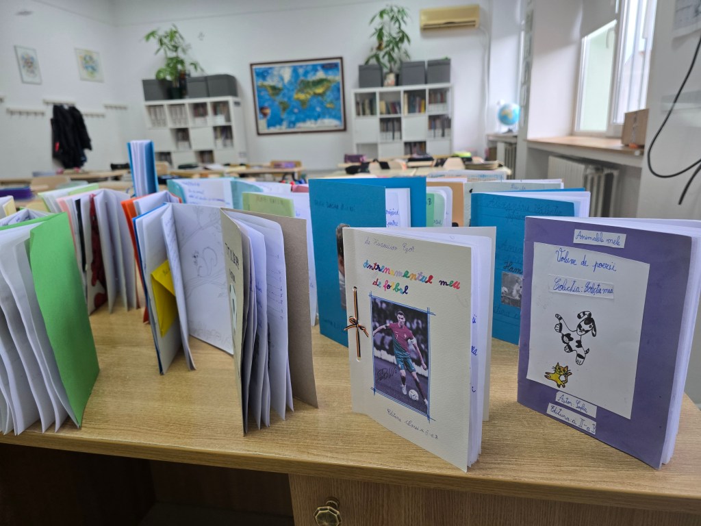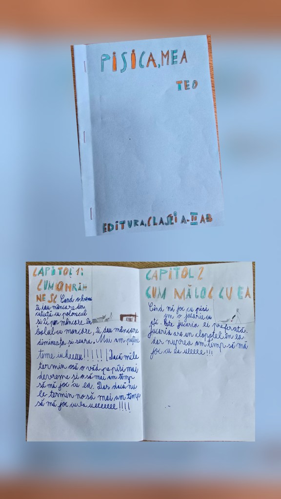 Cărțile confecționate de copii au fost pline de imaginație, muncă și entuziasm! Fie că au scris despre animalele preferate, prietenii necuvântători sau hobbyurile lor, micii autori au respectat toate elementele unei cărți adevărate: copertă, titlu, autor, cuprins, paginație, ba chiar și… Editura clasei! 📚✨