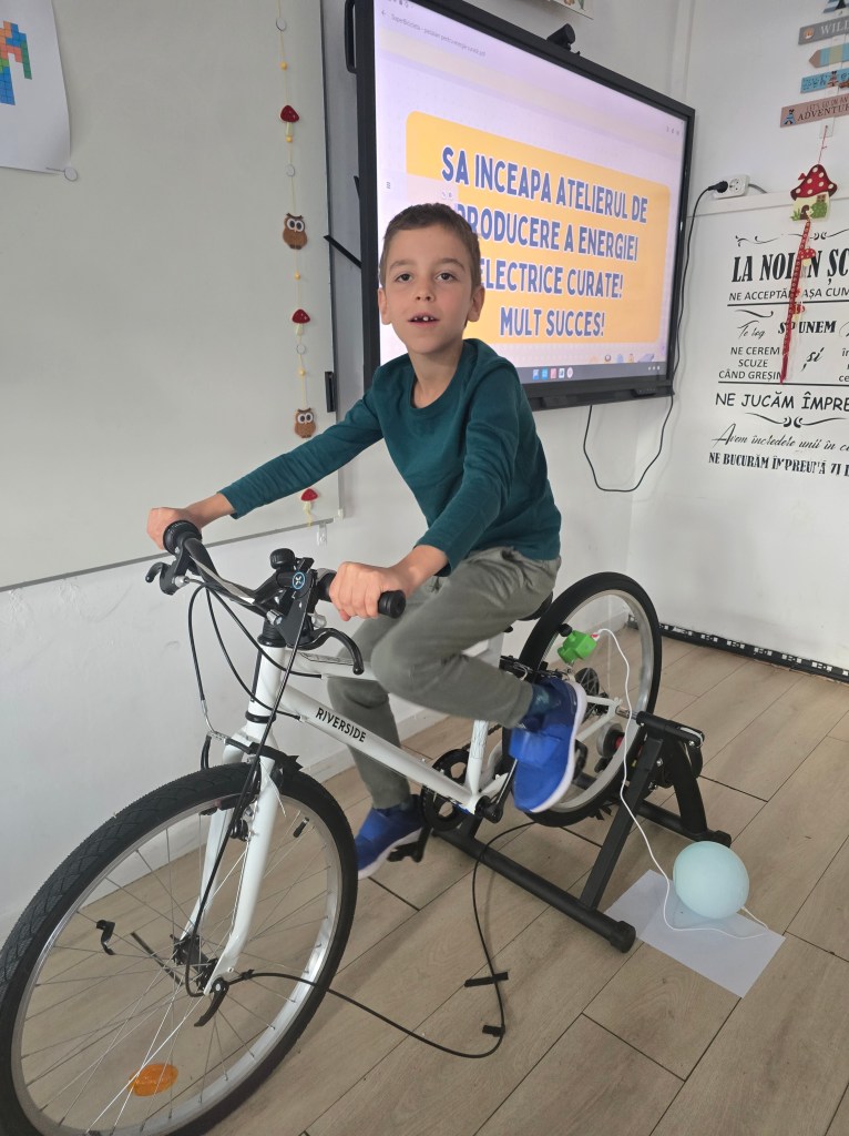 🚴♂Pedalează – Copiii au produs energie electrică cu ajutorul unei biciclete speciale, descoperind într-un mod interactiv cum mișcarea poate genera curent electric și cum putem folosi surse alternative de energie.