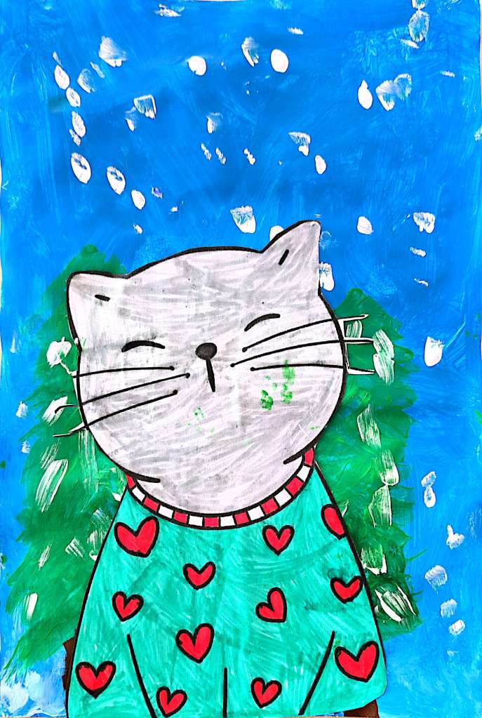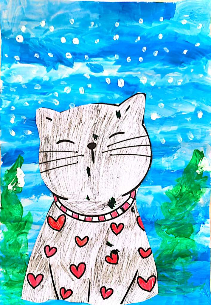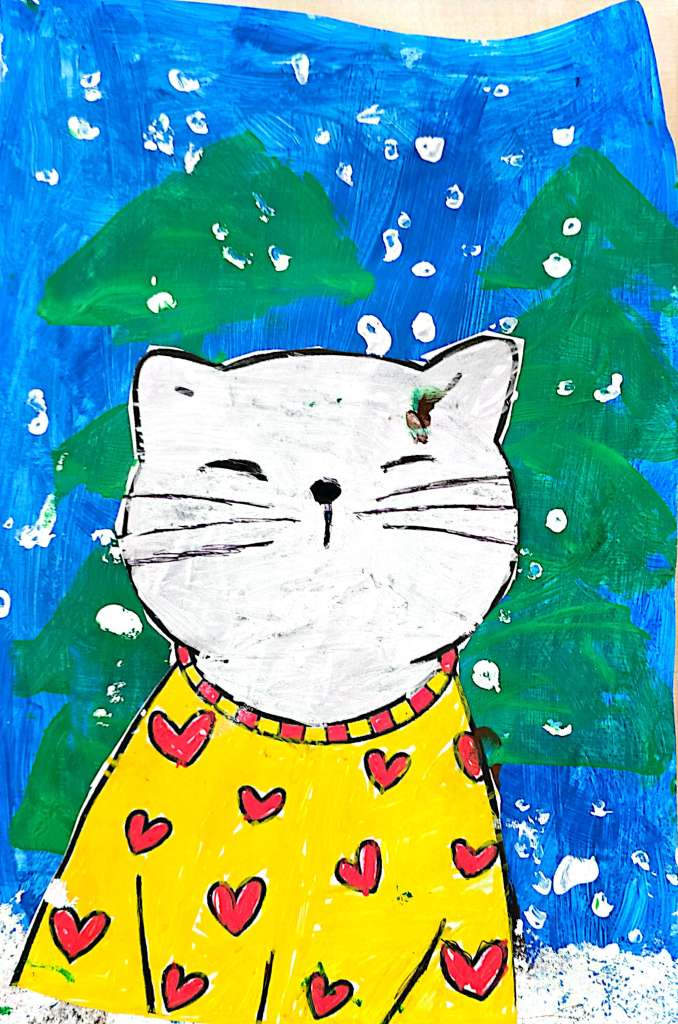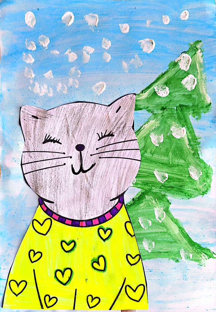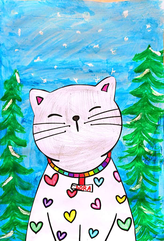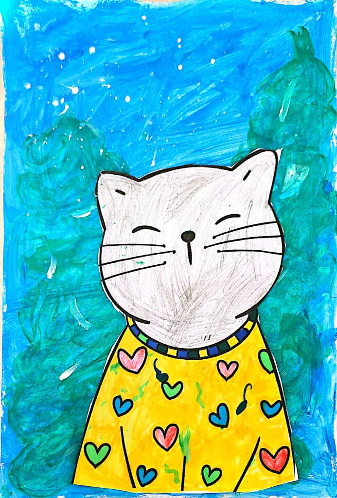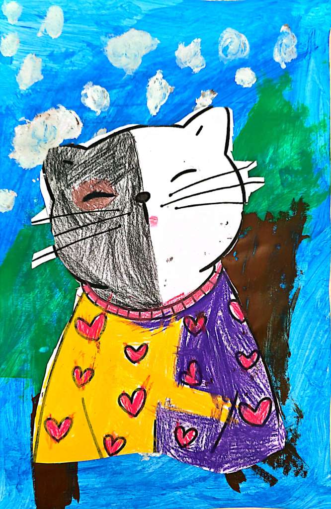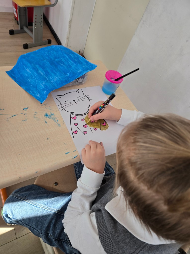 Personajele: În timp ce se usucă, trecem la desenul motanului și la decuparea acestuia în contur. Ulterior va fi lipit pe planșă.