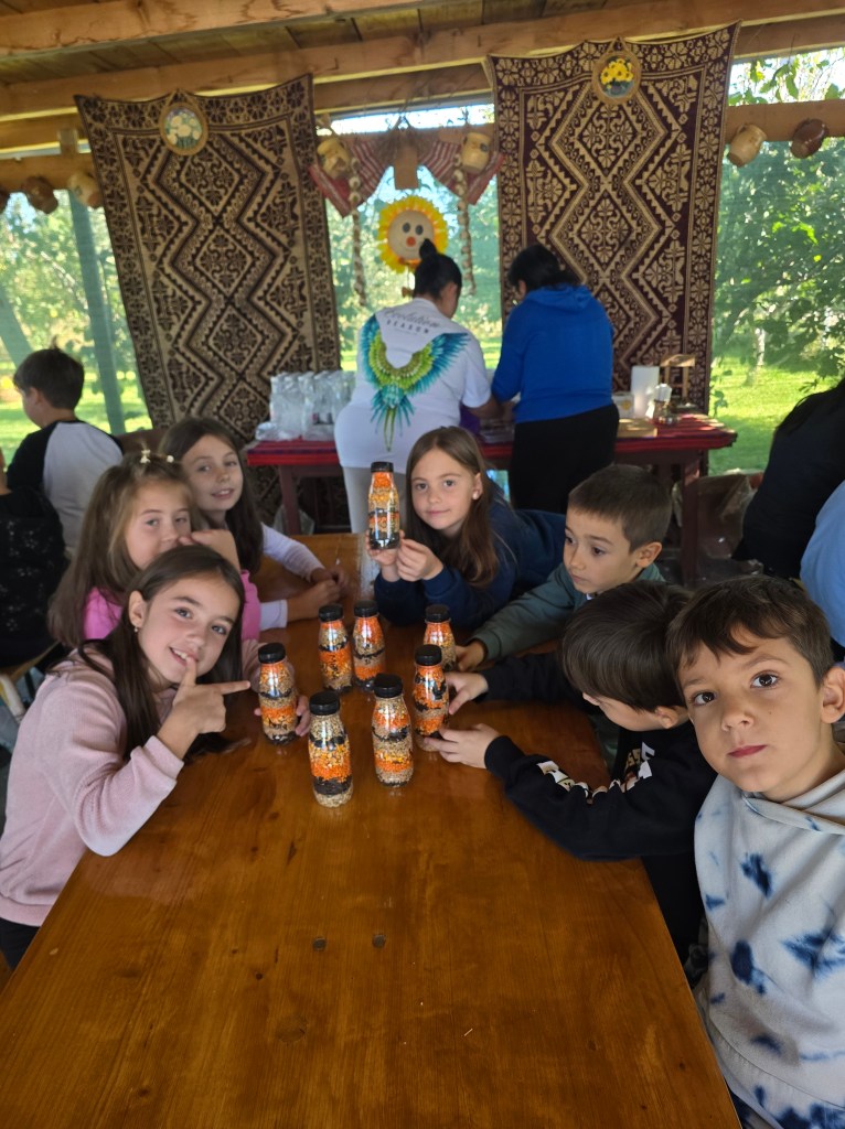 [ ] Cum a fost? A fost cu învățare, cu învățare, cu bucurie, cu hrană sănătoasă, cu multe degustări, cu sport în aer liber și cu un atelier creativ în care ne-am bucurat de roadele toamnei și am realizat Sporul casei. Am cunoscut animăluțele de la fermă și ne-am bucurat de o plimbare în căruța trasă de cai. 🧀🧈🥛