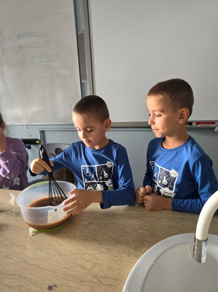 Am aflat ingredientele din care este făcut săpunul și am asistat la fabricarea acestuia. 🧴🧼 Ascultători, am urmărit cu atenție indicațiile oferite de doamna profesor de chimie și am folosit cu grijă instrumentele și materialele Clubului de Eco-Știință. 🧪🔬🧫