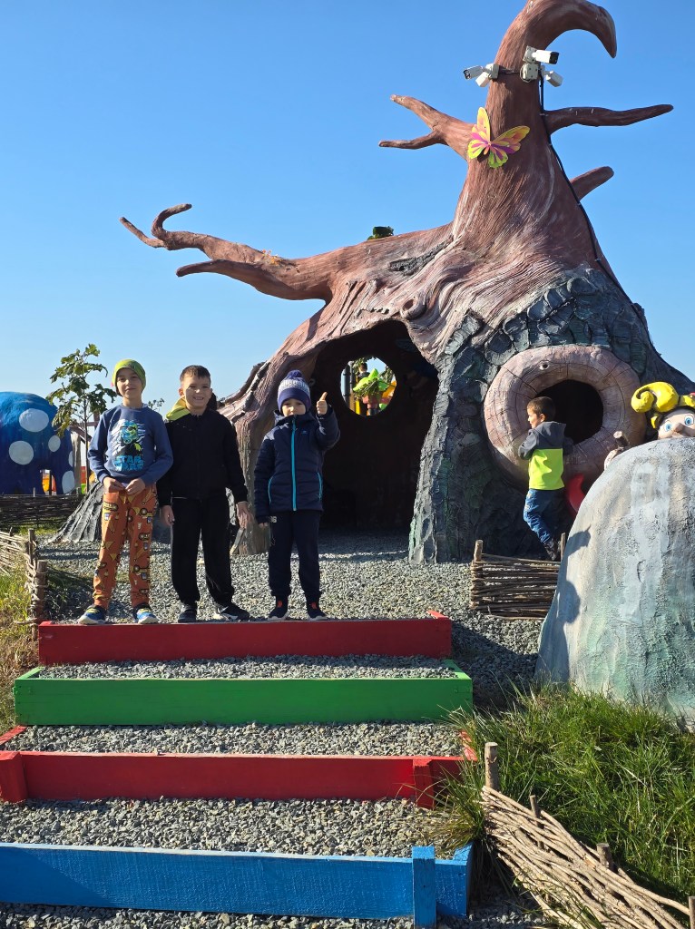 [ ] Unde? În parcul tematic ,,Poiana Basmelor „, un loc în care căsuțele de poveste ne-au condus într-o lume imaginară, printre personajele preferate din desene animate și basmele copilăriei.